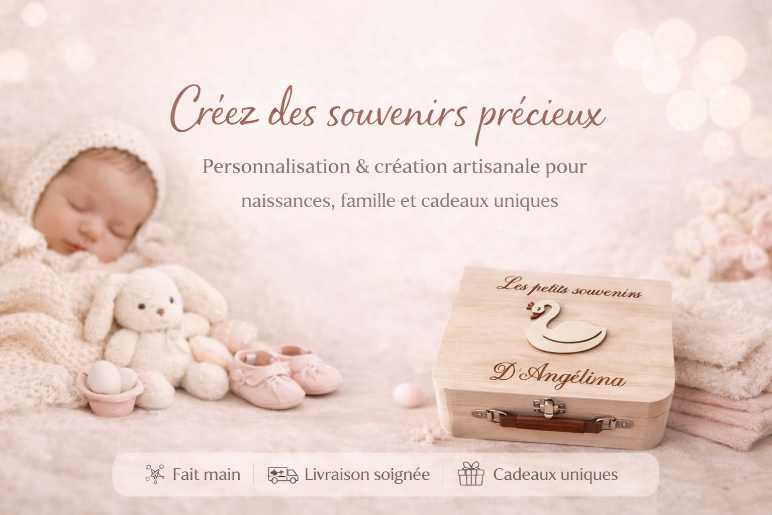 Boîte Souvenirs Bébé Personnalisée – Coffret Naissance en Bois | Les Petits Souvenirs - Cygnes